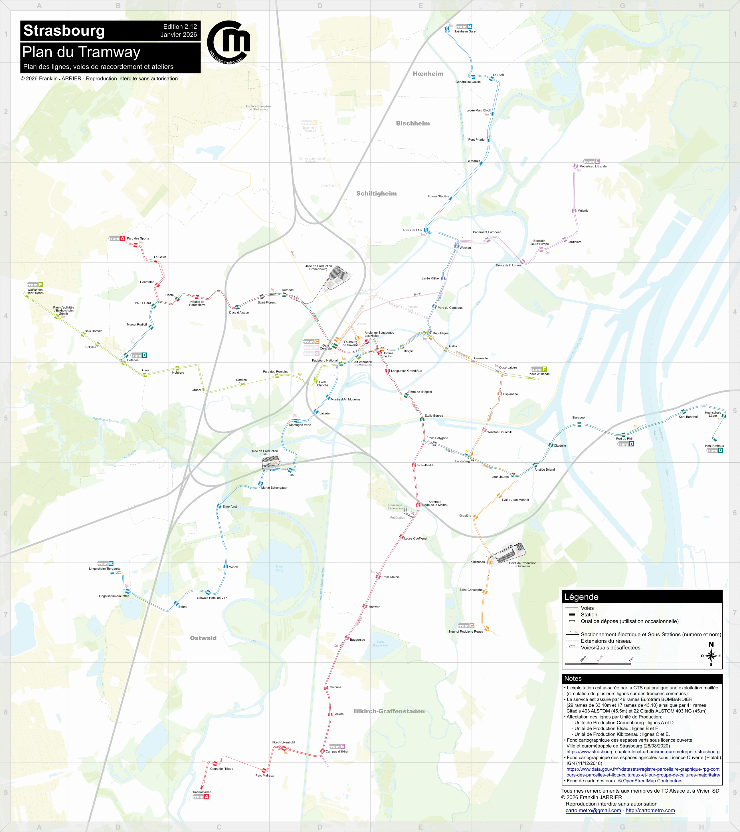 | Carte détaillée* du réseau tramway de Strasbourg |